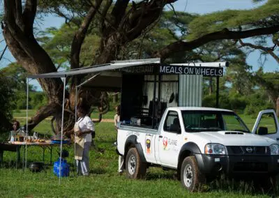 This day includes an exhilarating half-day game drive through the sprawling expanse of Hwange National Park, where a world of untamed beauty and wildlife awaits your discovery. As you step into the safari vehicle, anticipation fills the air, and your senses come alive with the promise of extraordinary encounters. As the journey unfolds, your thirst is quenched with refreshing water and an assortment of soft drinks, rejuvenating you for the adventure that lies ahead. The vehicle slows to a stop at a picturesque spot, where you indulge in a light lunch.