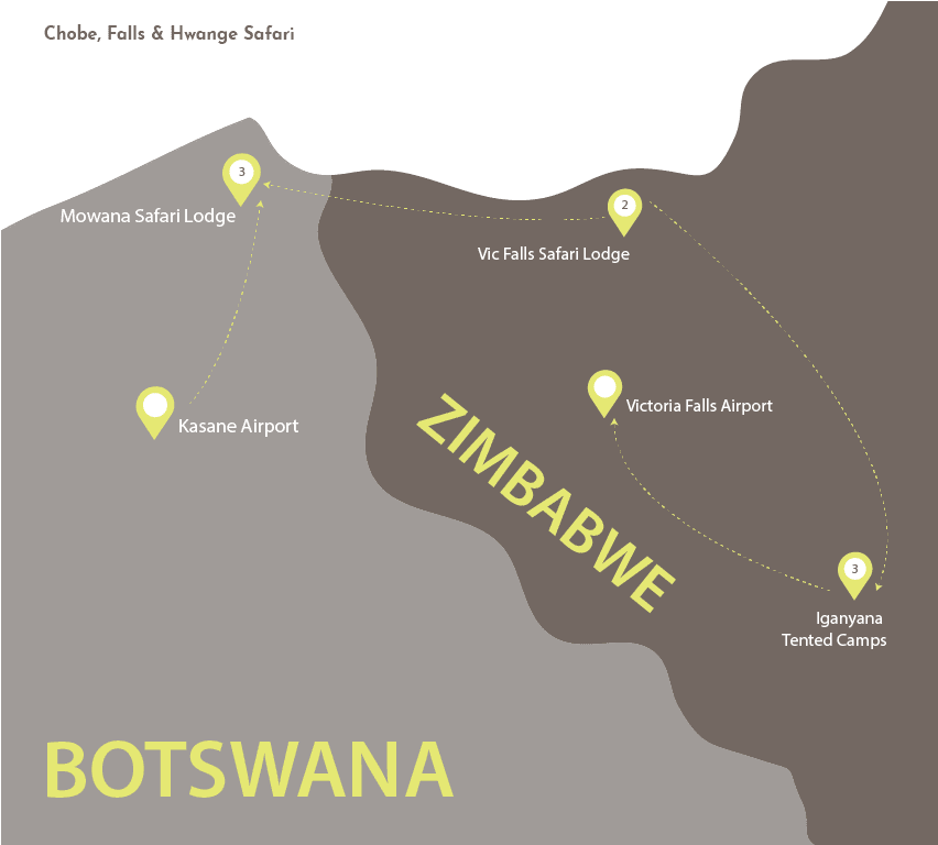 - Kasane, Botswana & Victoria Falls, Zimbabwe & Hwange, Botswana